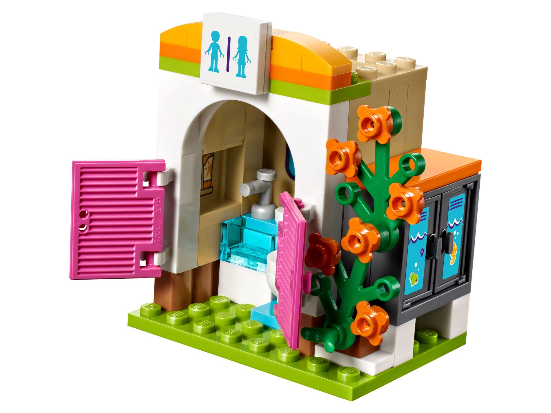 | 1 X Door 1 x 2 x 3 with Vertical Handle, New Mold with Pool Locker, White Waves and Bright Light Orange Seahorse Pattern (Sticker) - Set 41313 | Dark Bluish Gray |   |  |