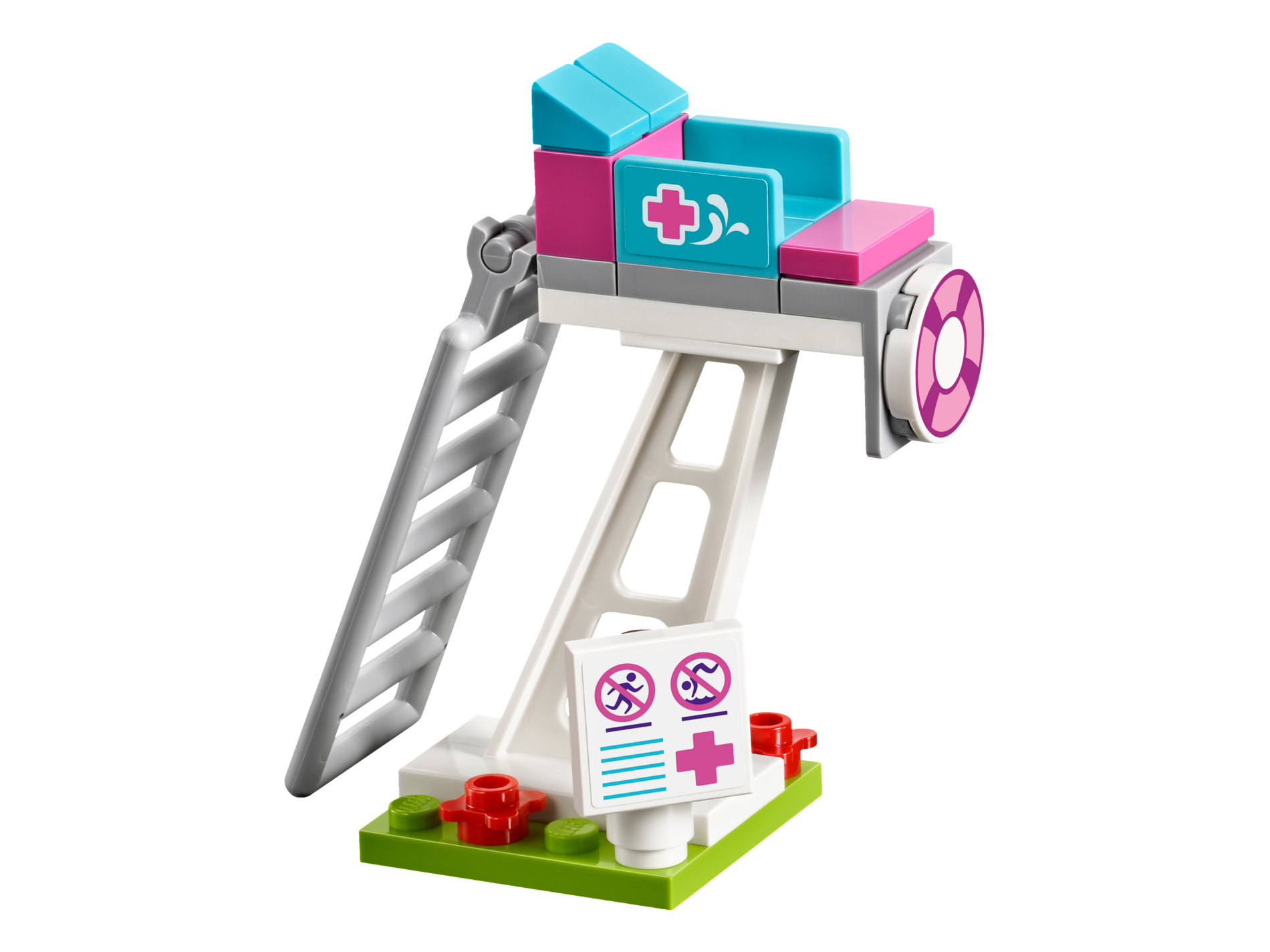 | 1 X Tile 2 x 2 with No Running and No Diving Signs, Medium Azure Lines and Dark Pink Cross Pattern (Sticker) - Set 41313 | White |   |  |