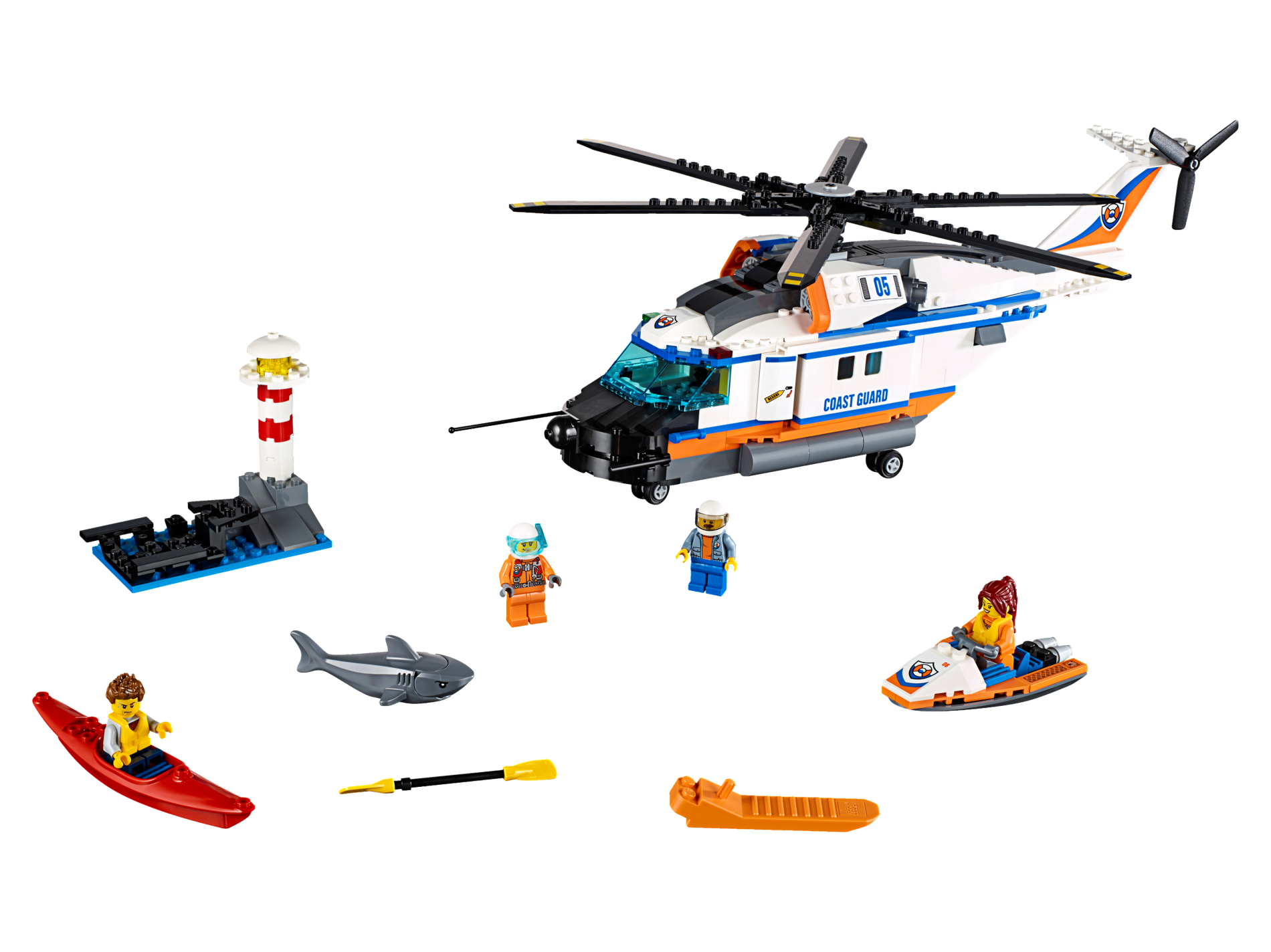 | 1 X Wedge 4 x 4 Triple with Stud Notches with Orange '06' and Coast Guard Logo Pattern (Sticker) - Set 60166 | White |   |  |