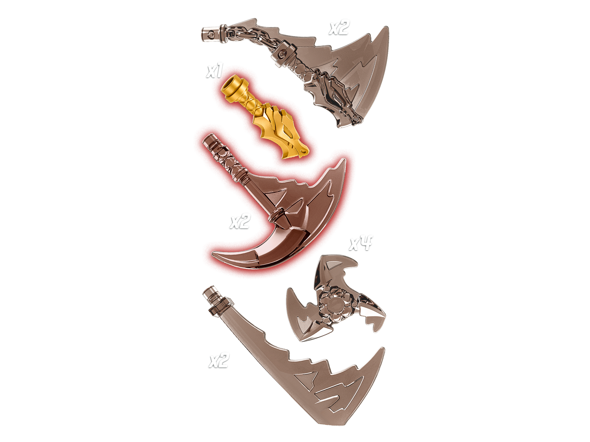 | 1 X Minifigure, Weapon Sword Hilt with Dragon Head | Pearl Gold |   |  |