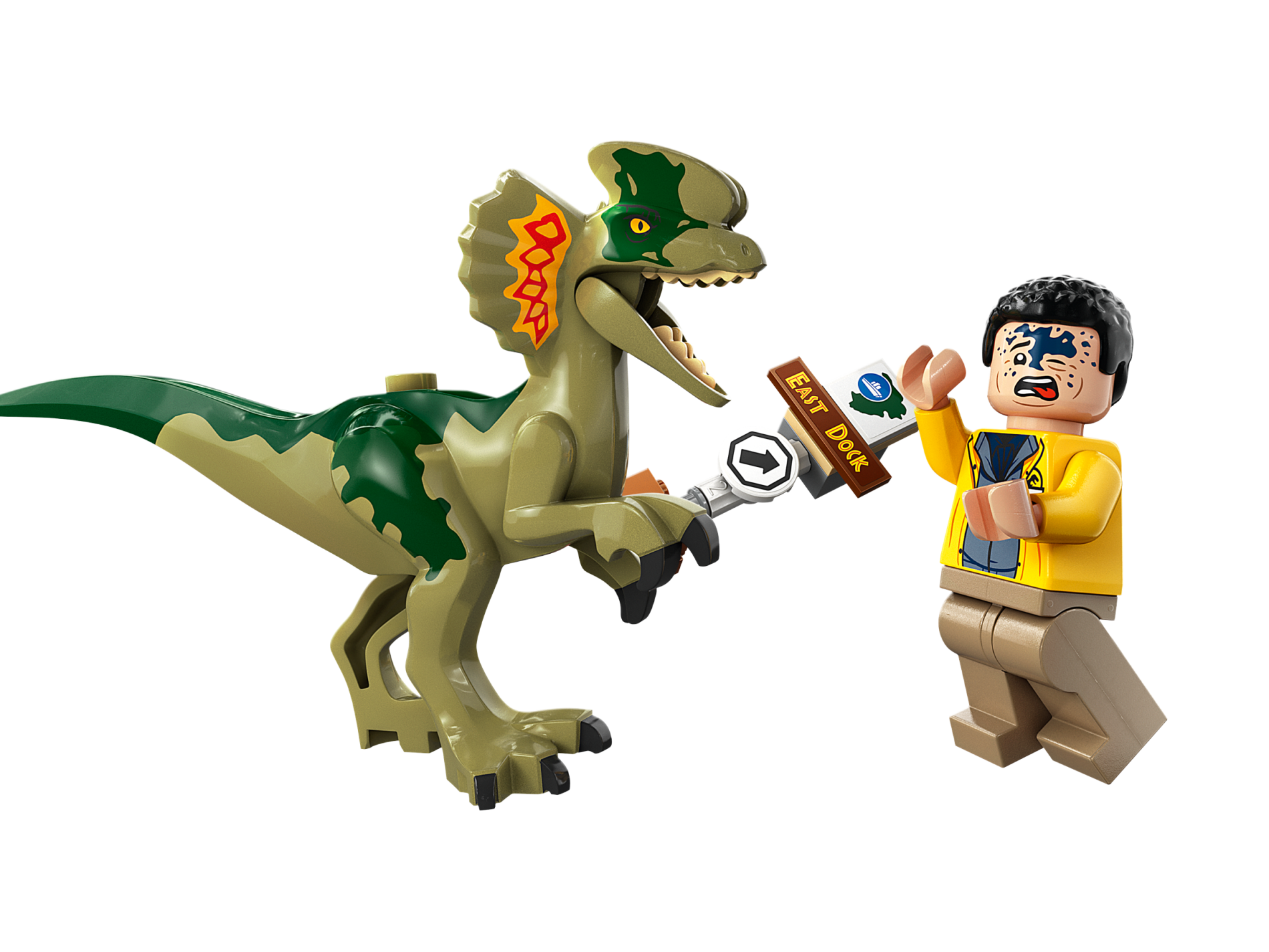 | 1 X Dinosaur Dilophosaurus Second Version with Flexible Rubber Tail, Bright Light Orange, Red and Dark Green Markings | Olive Green |   |  |